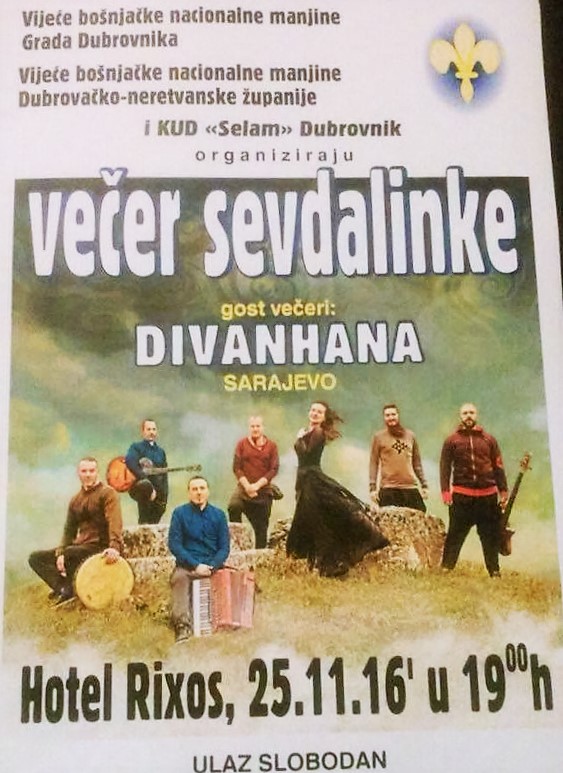 POVODOM OBILJEŽAVANJA DANA DRŽAVNOSTI BOSNE I HERCEGOVINE POZIVAMO VAS NA VEČER SEVDALINKE KOJA ĆE SE ODRŽATI U HOTELU LIBERTAS RIXOS, DANA 25.11.2016. S POČETKOM U 19,00 SATI.